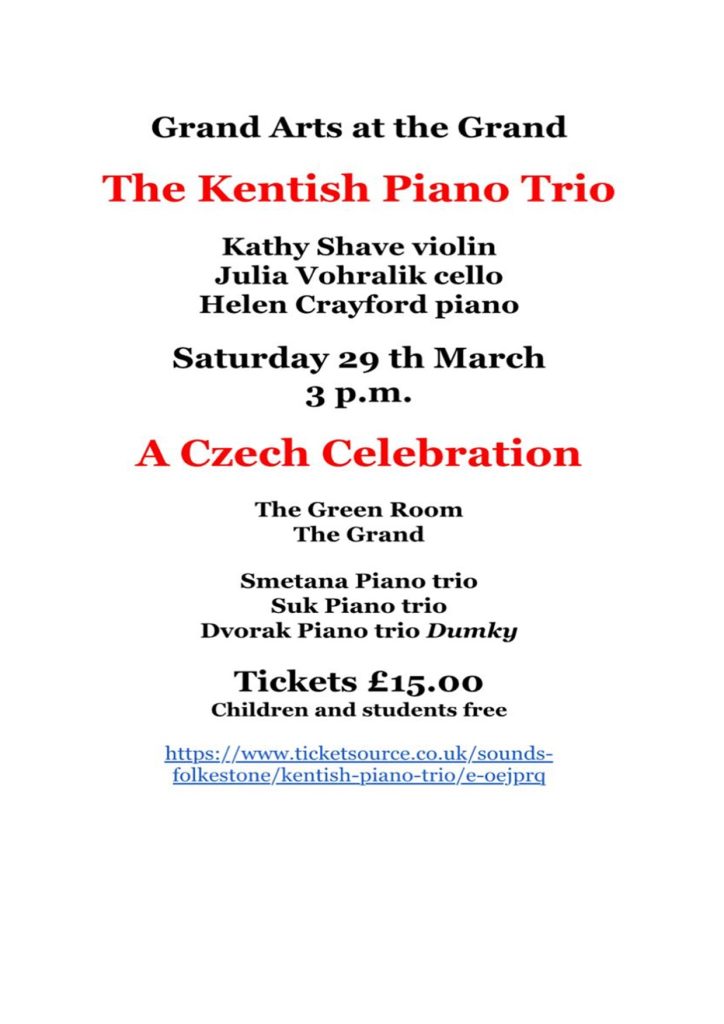 We are so lucky to have international musicians playing at The Grand this Saturday 29th March. The price reflects the fact that some of them are Folkestone dwellers! What a wonderful opportunity.